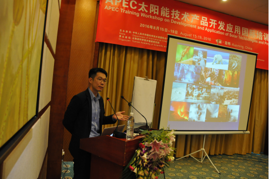 本次培训班邀请了新西兰皇家社会科学院、知识产权公司佩妮博士,东盟能源与经济发展研究院瓦特拉邦院长,泰国帕尧大学能源与环境学院苏拉卡博士,云南师范大学太阳能研究所李明所长,云南晶能科技有限公司傅定文董事长等为学员授课。本次培训班系统讲解了太阳能开发利用现状和前景,太阳能技术研发和应用,太阳能光伏发电,太阳能光伏光热利用技术和产品、示范项目,知识产权,太阳能推广案例介绍、模式机制等课程,并组织学员参观了云南省玉溪市太标太阳能设备有限公司生产车间和石林云能投新能源开发有限公司。
