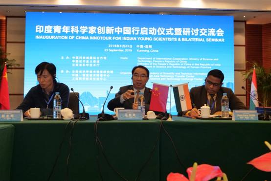 9月23日上午,在昆明举行了印度青年科学家创新中国行启动仪式暨对接交流会。中国—南亚技术转移中心副主任、中国—东盟创新中心副主任、云南省科学技术情报研究院院长马敏象主持了启动仪式。云南省科技厅合作一处处长贺葳,云南大学科技处处长、教授胡金明博士,印度理工学院(海德拉巴)化学工程系副教授钱德拉•谢克哈尔•沙玛博士分别代表主办方、中印青年科学家发言。沙玛博士在发言时表示,活动的举办将促进中国与印度科学家的交流与合作,共同发掘合作机会,推进中国与印度科技创新合作。在对接交流会上,印度青年科学家和来自云南大学、昆明理工大学、中科院昆明植物所、中科院云南天文台、云南晶能科技有限公司的青年科学家进行了深入的交流和讨论,提出了双方的合作需求,并增进了双方的了解。9月23日-24日印度青年科学家在昆明考察了昆明理工大学、云南大学、中国科学院昆明植物所。
