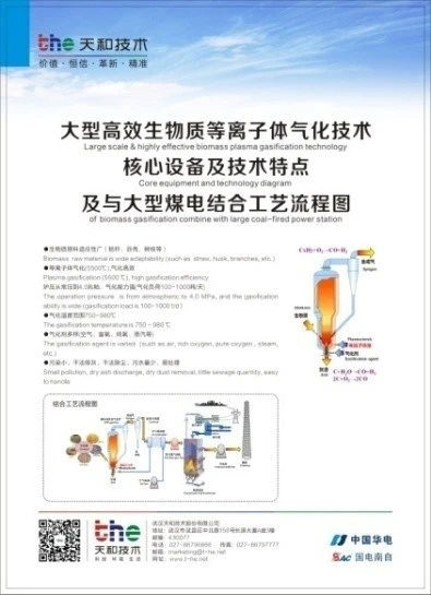 等离子体生物质气化技术,是天和生态能源公司拥有独立知识产权及多项专利的技术,技术应用于新能源行业,应用成熟。该技术可以极大改进生物质能源利用问题,其特点是大型,高效利用生物质资源进行发电(也可作为分步式能源进行供热,供生物质),处理量可达1000t/d,碳转化效率98%以上 ;环保也是该技术的一大特点,可以改善锅炉燃烧,有利于降低NOX排放,CO2的排放量减少,可申请碳排放交易额度。