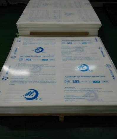LED照明增光型PC扩散膜片产品项目主要通过采用光学处理手段,设计、复制制辊表面透镜结构,从而实现保留原材高透光性能,且通过介入光增透技术,减少有效光源的浪费,使透光率达到92%以上;调整光学级原材和有机硅树脂添加比例,实现产品雾度95%以上,光源利用率提高8%以上,实现产品扩散、遮蔽,节能,环保。