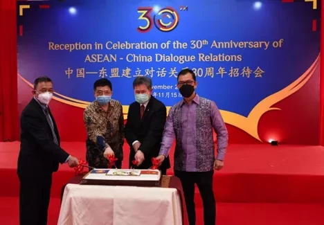 11月15日上午,中国驻东盟使团隆重举办中国—东盟建立对话关系30周年纪念招待会暨图片展。这是自疫情以来驻东盟使团举办的首个线下实体活动,受到东盟外交圈热烈欢迎。邓锡军大使、东盟秘书长林玉辉、印尼外交部东盟事务高官代表苏博洛大使、中国—东盟关系协调国缅甸常驻东盟代表昂苗敏现场致辞,东盟副秘书长德尼、艾格帕、陈德平及秘书处高级官员、东盟各国常驻代表和对话伙伴国驻东盟大使、中外媒体代表近70人出席活动。
