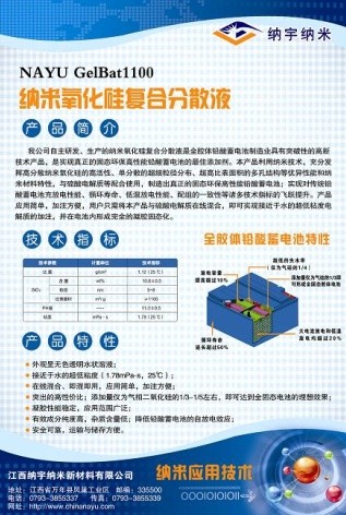 项目简介: 本项目研究的目的是通过对小粒径、超高比表面纳米氧化硅在新能源蓄电池电解液上的应用,开发出纳米氧化硅复合分散液和纳米胶体电解液、专用在线加胶设备。本项目集成了完整的小粒径、超高比表面纳米氧化硅在新能源蓄电池领域的产业化...