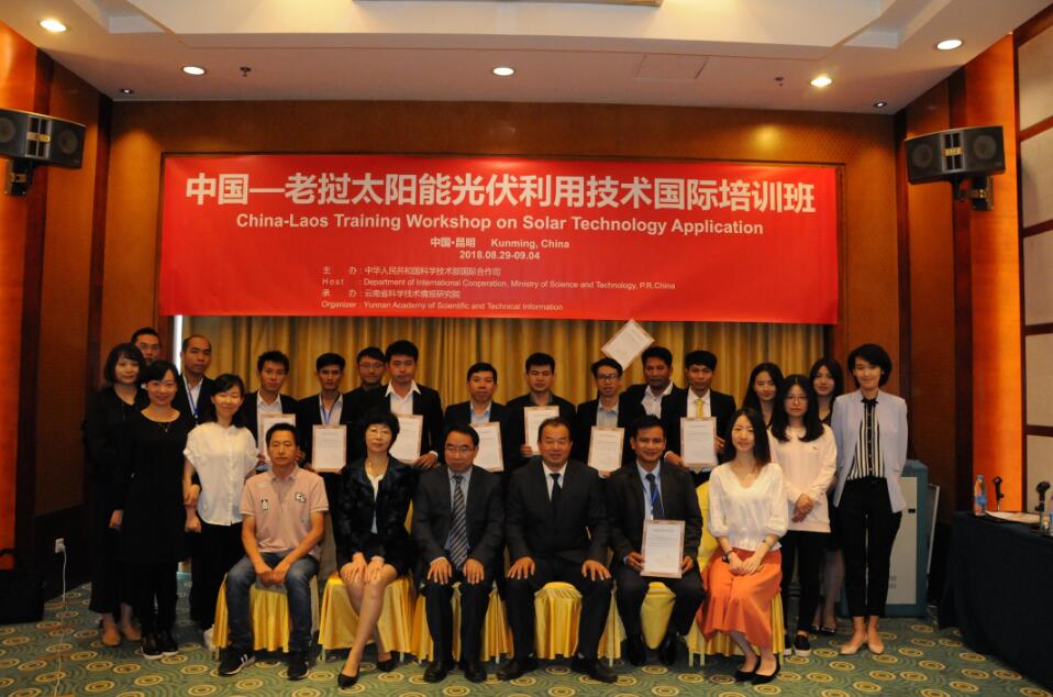由科技部国际合作司主办,云南省科学技术情报研究院承办、云南晶能科技有限公司协办的中国—老挝太阳能光伏利用技术国际培训班于2018年8月28—9月5日在昆明成功举行。本次培训班为期8天,来自中国—老挝太阳能科技创新与合作中心承建单位老挝科...